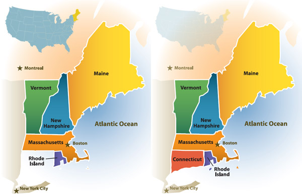State Maps of New England Maps for MA, NH, VT, ME CT, RI